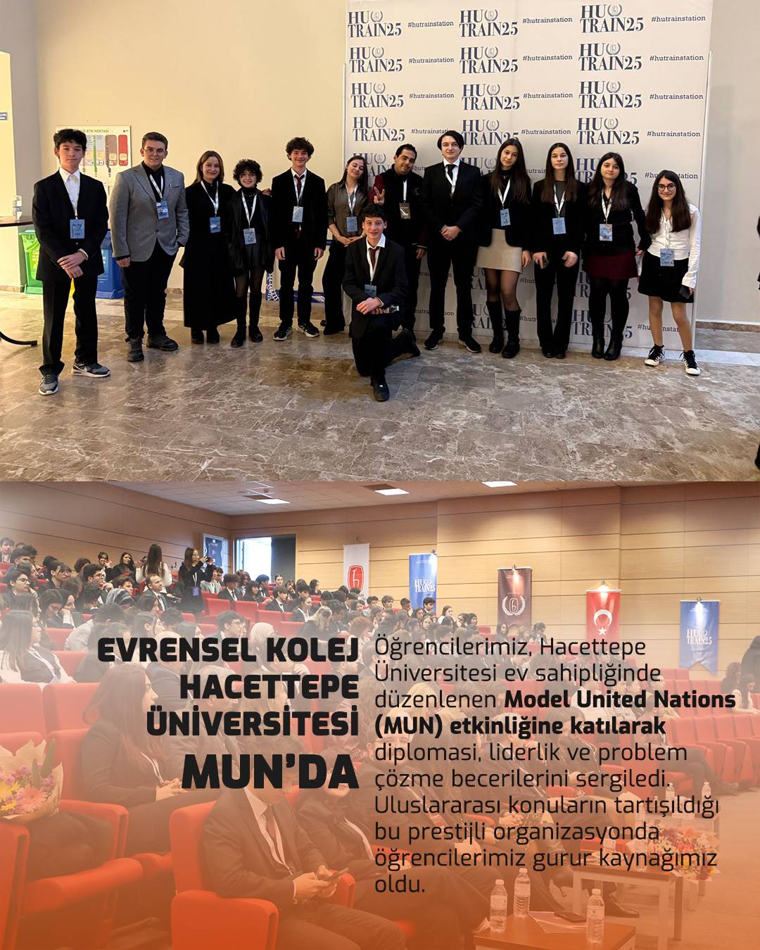 Hacettepe Üniversitesi’nin akademik ortamında gerçekleştirilen bu prestijli etkinlik, Evrensel Kolej öğrencilerinin özgüven kazanmalarına, dünya meselelerine farklı bakış açılarıyla yaklaşmalarına ve akademik gelişimlerine katkı sağladı.