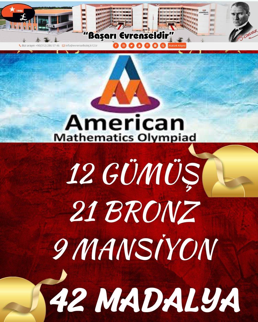 Evrensel Kolej öğrencileri, bu yıl düzenlenen uluslararası Amerika Matematik Olimpiyatları (AMO)’nda büyük bir başarıya imza atarak toplam 42 madalya kazandı. Öğrencilerimiz yarışmada 12 gümüş, 21 bronz ve 9 mansiyon madalya elde ederek okulumuzu uluslararası arenada gururla temsil etti.