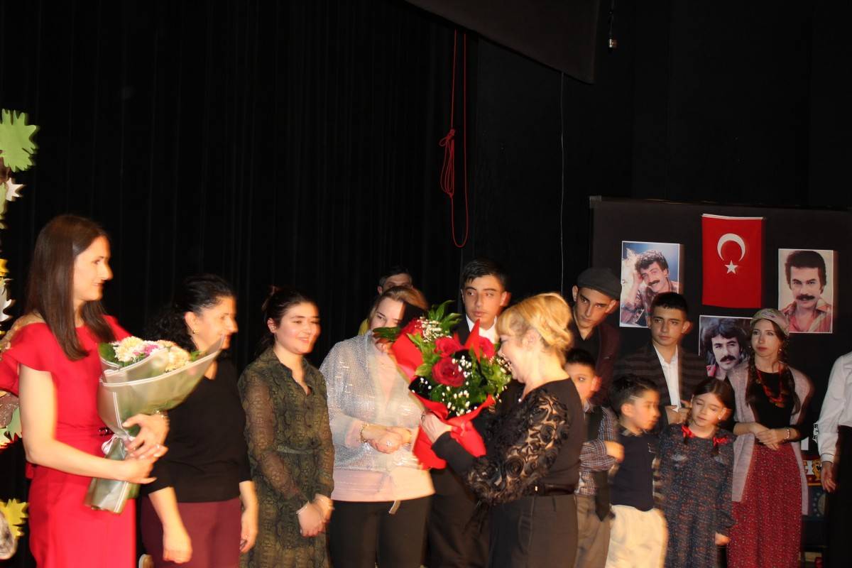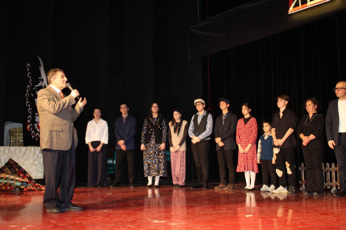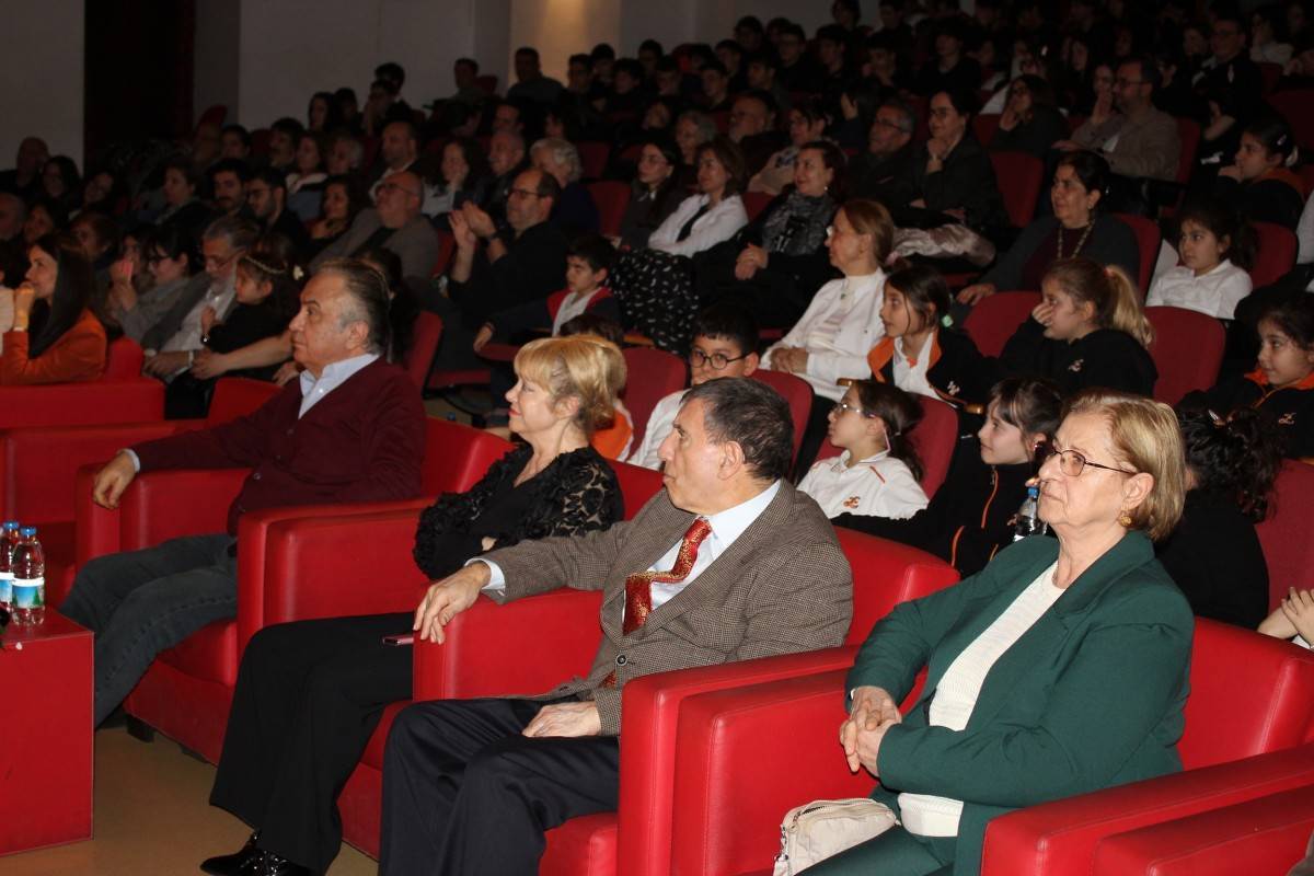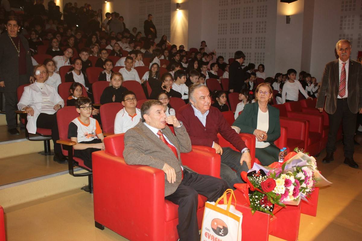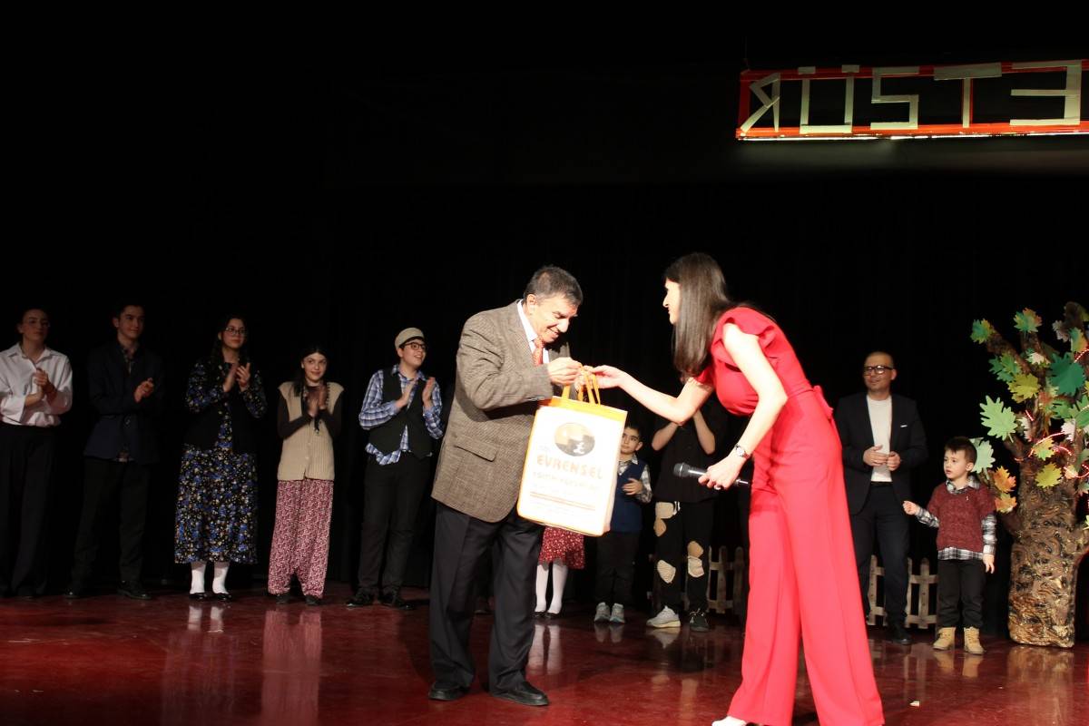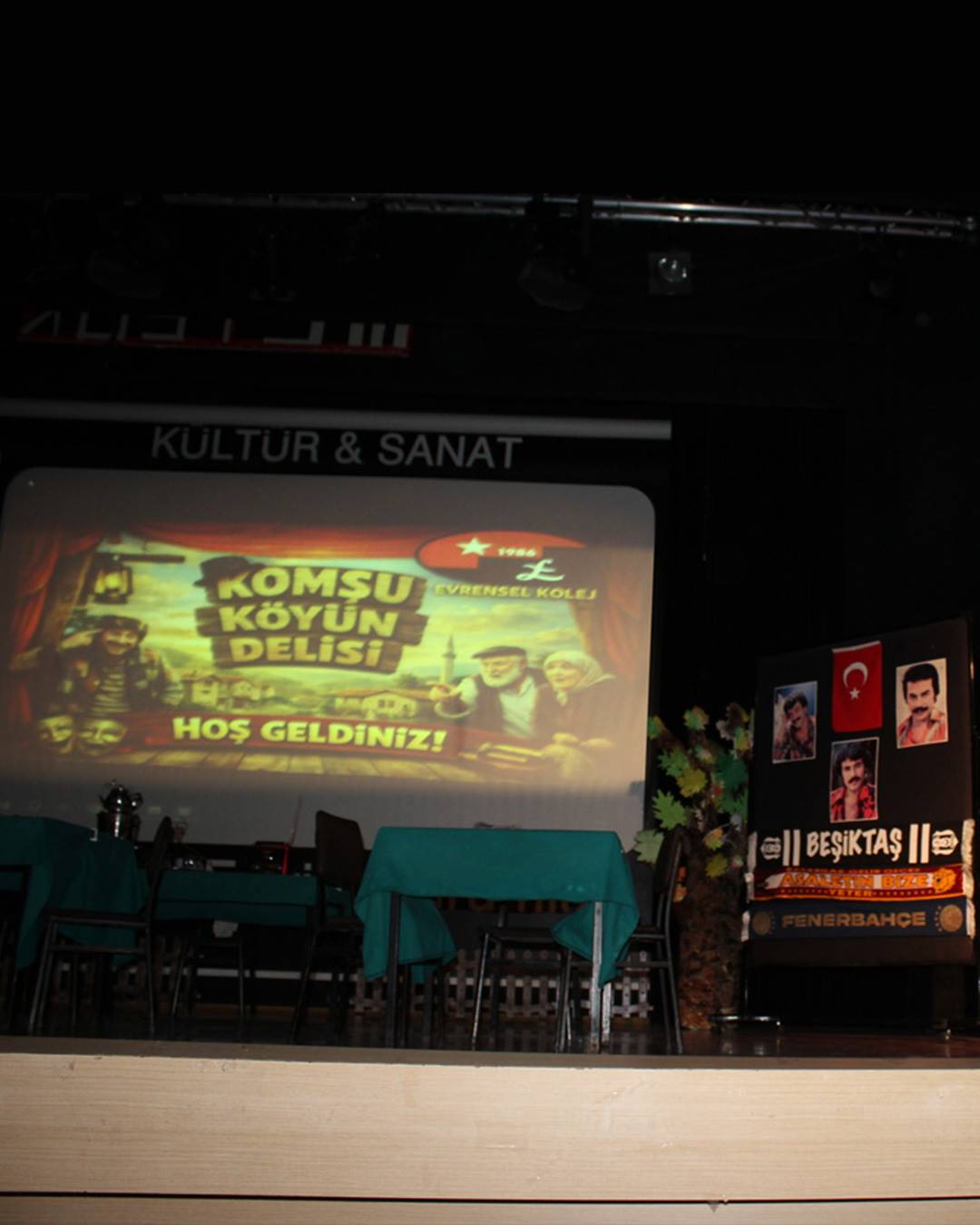 Prof. Dr. Üstün Dökmen'in eseri "Komşu Köyün Delisi" adlı tiyatro oyunumuz seyirciyle buluştu. Oyunda bir de sürpriz vardı. Oyunun yazarı Prof. Dr. Üstün DÖKMEN de oyunumuzu izleyenler arasındaydı. Bu durum hem çocuklarımızı hem seyircilerimizi çok mutlu ederken öğrencilerimizin performansları göz doldurdu ve oyun izleyicilerden tam not aldı.