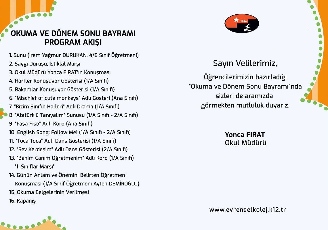 14 Oca 2026 OKUMA VE DÖNEM SONU BAYRAMIMIZA DAVETLİSİNİZ Öğrencilerimizin hazırladığı "Okuma ve Dönem Sonu Bayramı"nda sizleri aramızda görmekten mutluluk duyarız. Paylaş: