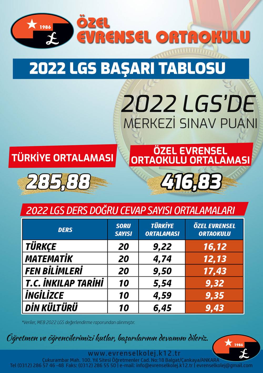 ÖZEL EVRENSEL ORTAOKULU 2022 LGS BAŞARI TABLOSU