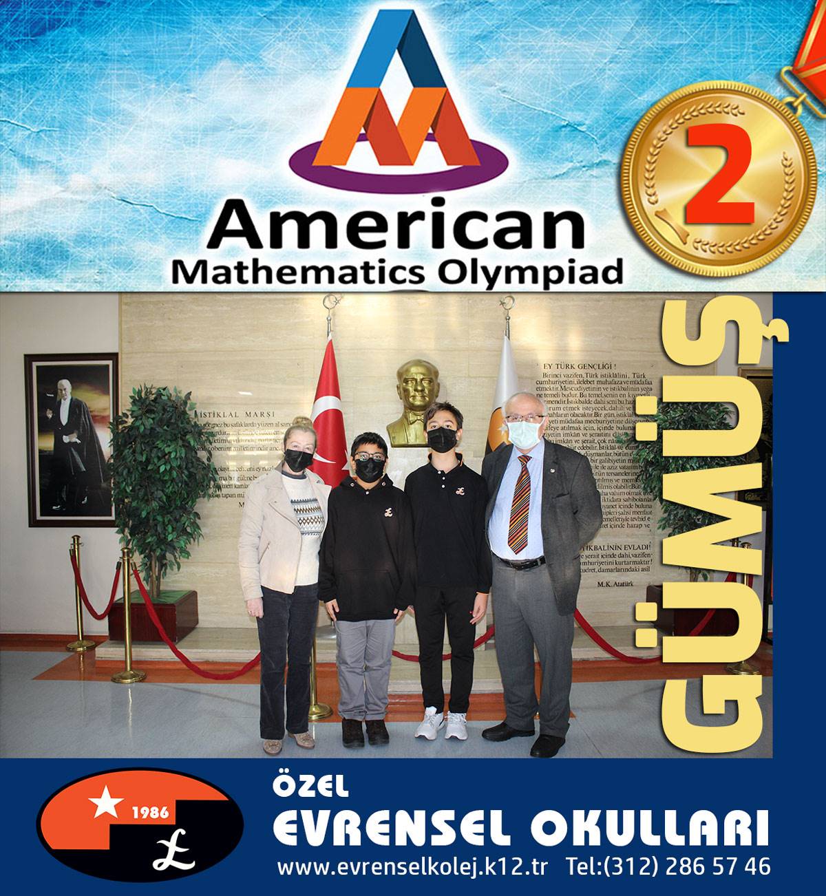 Amerikan Matematik Olimpiyatları, İlkokul - Ortaokul ve Lise öğrencileri için Southern İllinois University (SIU) ve SIMCC tarafından öğrenciler arasındaki rekabeti artırmak için Matematik alanında düzenlenen uluslararası bir yarışmadır. Uluslararası Matematik Yarışması ((International American Math Olympiads 2021) bu yıl 12 Kasım 2021 tarihinde yüz yüze olarak gerçekleştirildi.