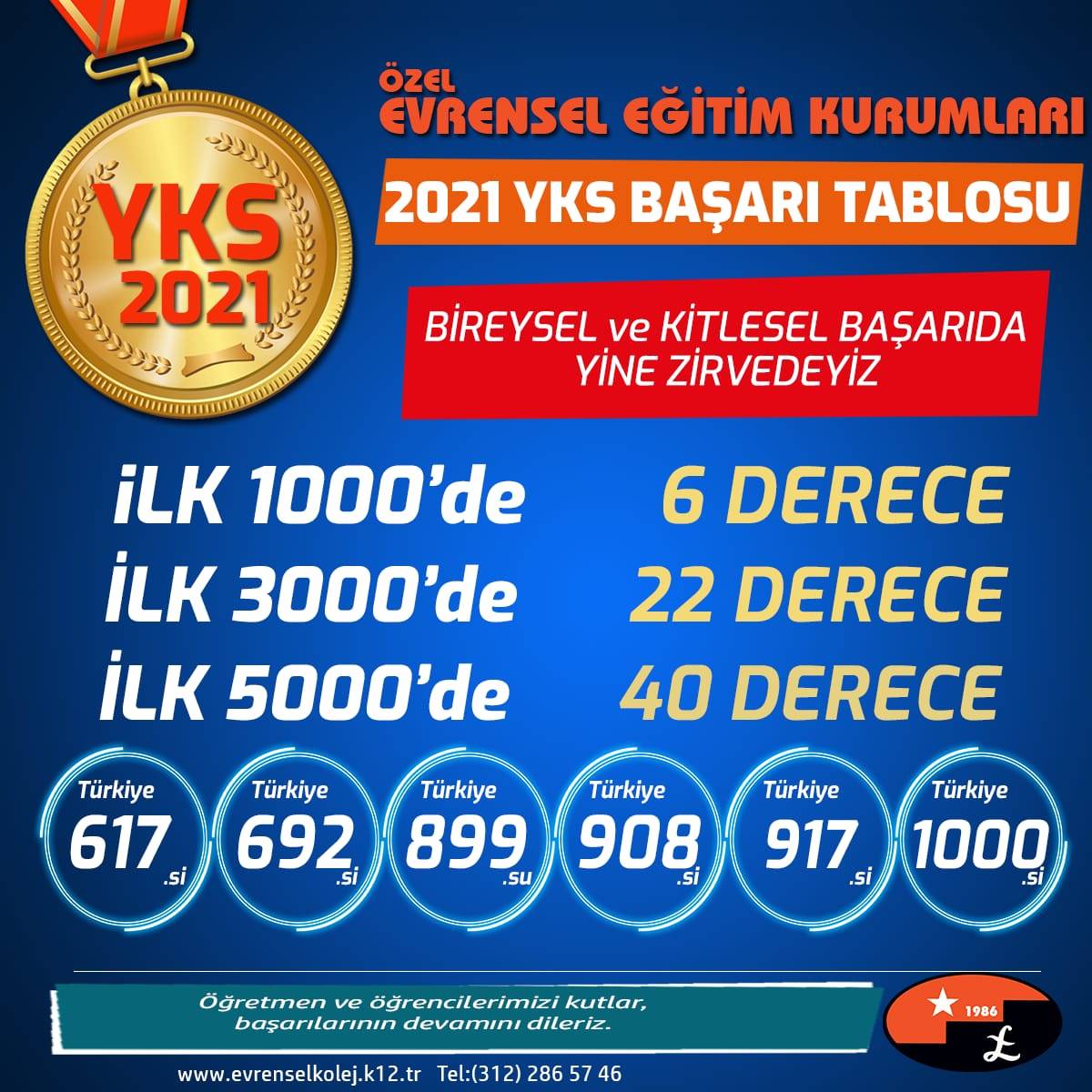 Özel Evrensel Okulları her yıl olduğu gibi bu yılda büyük başarılara imza atmıştır. LGS sınavında olduğu gibi YKS sınavında da dereceler yine Evrensel Okullarında.
