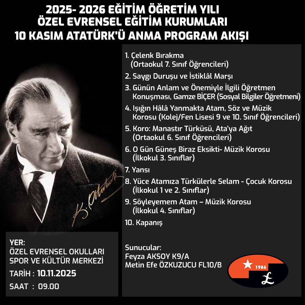 10 KASIM ATATÜRK’Ü ANMA TÖRENİ PROGRAMINA DAVETLİSİNİZ