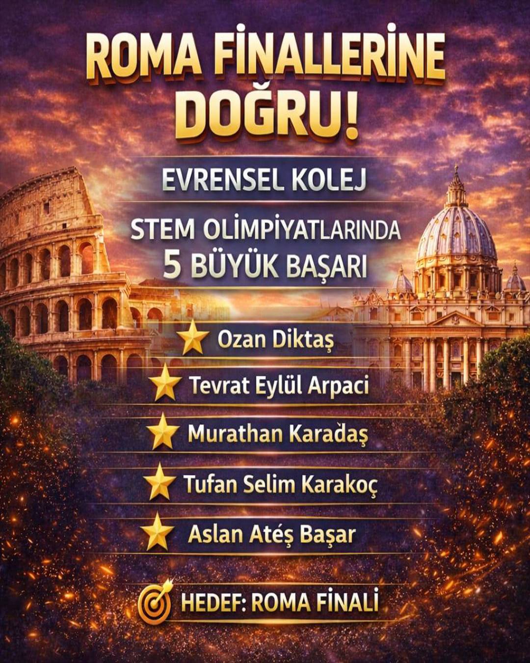 Bilimsel düşünme ve analitik becerileriyle fark yaratan öğrencilerimizi tebrik ediyor, Roma Finali’nde başarılar diliyoruz.