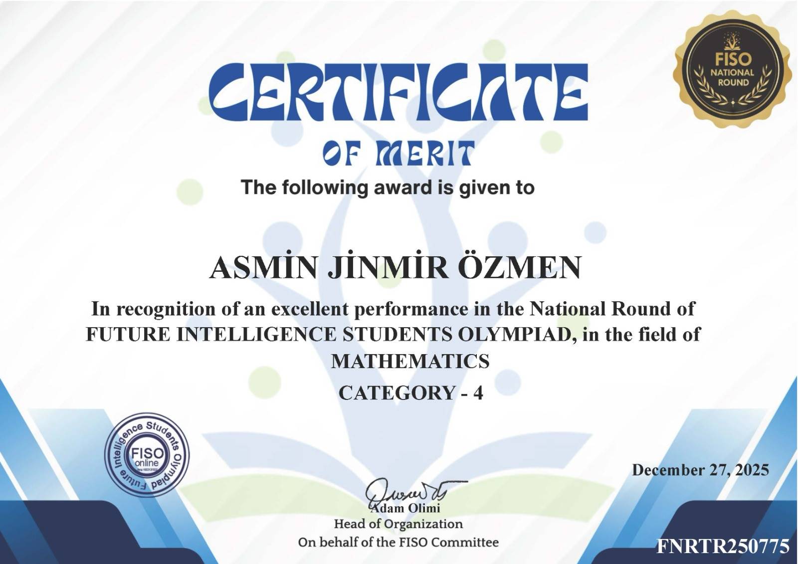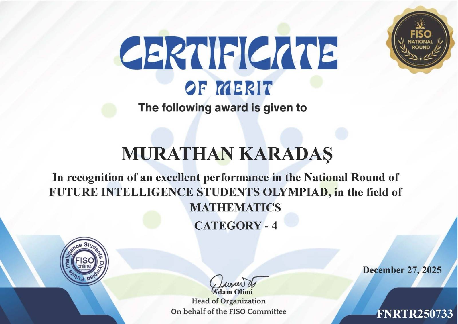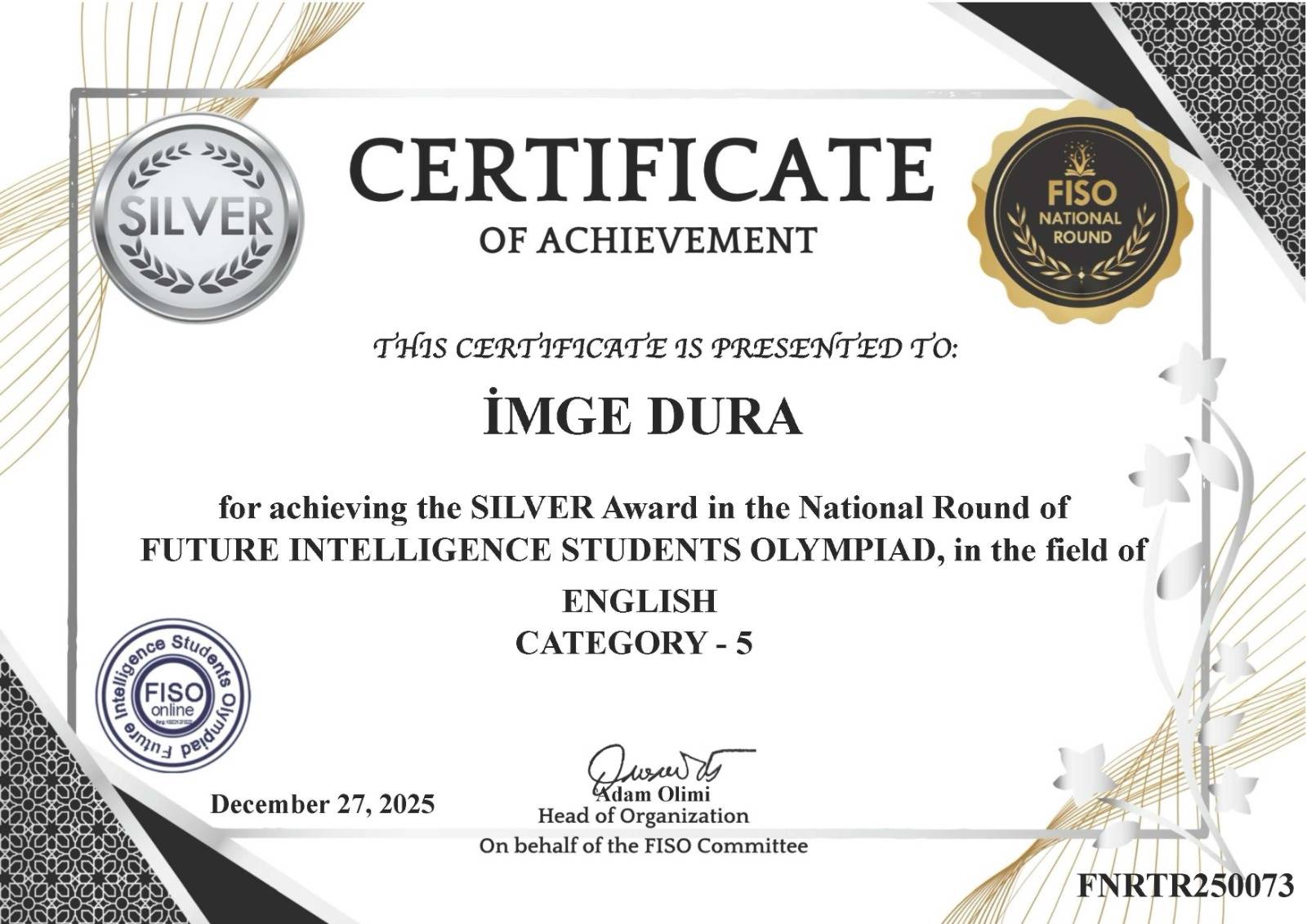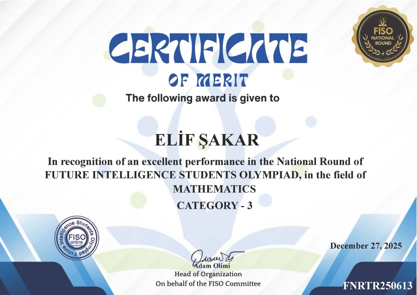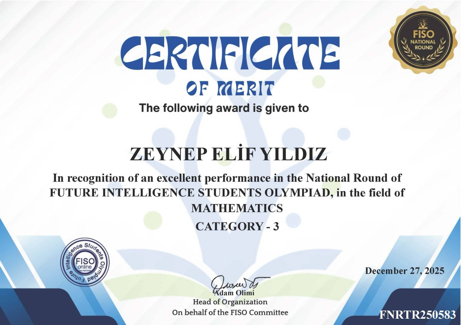 Olimpiyatlarda yüksek puan barajını geçerek başarılarını sertifikalandıran öğrencilerimiz: