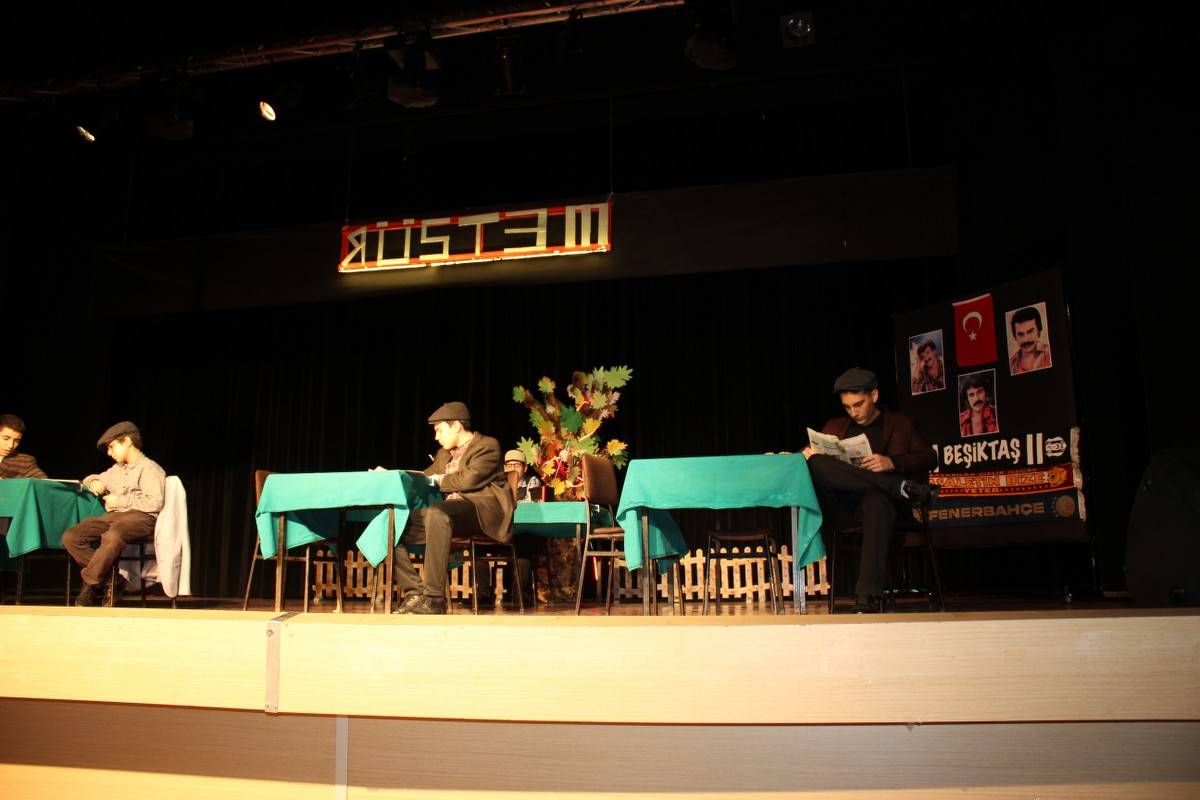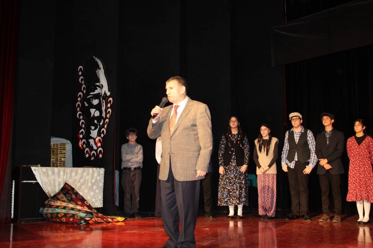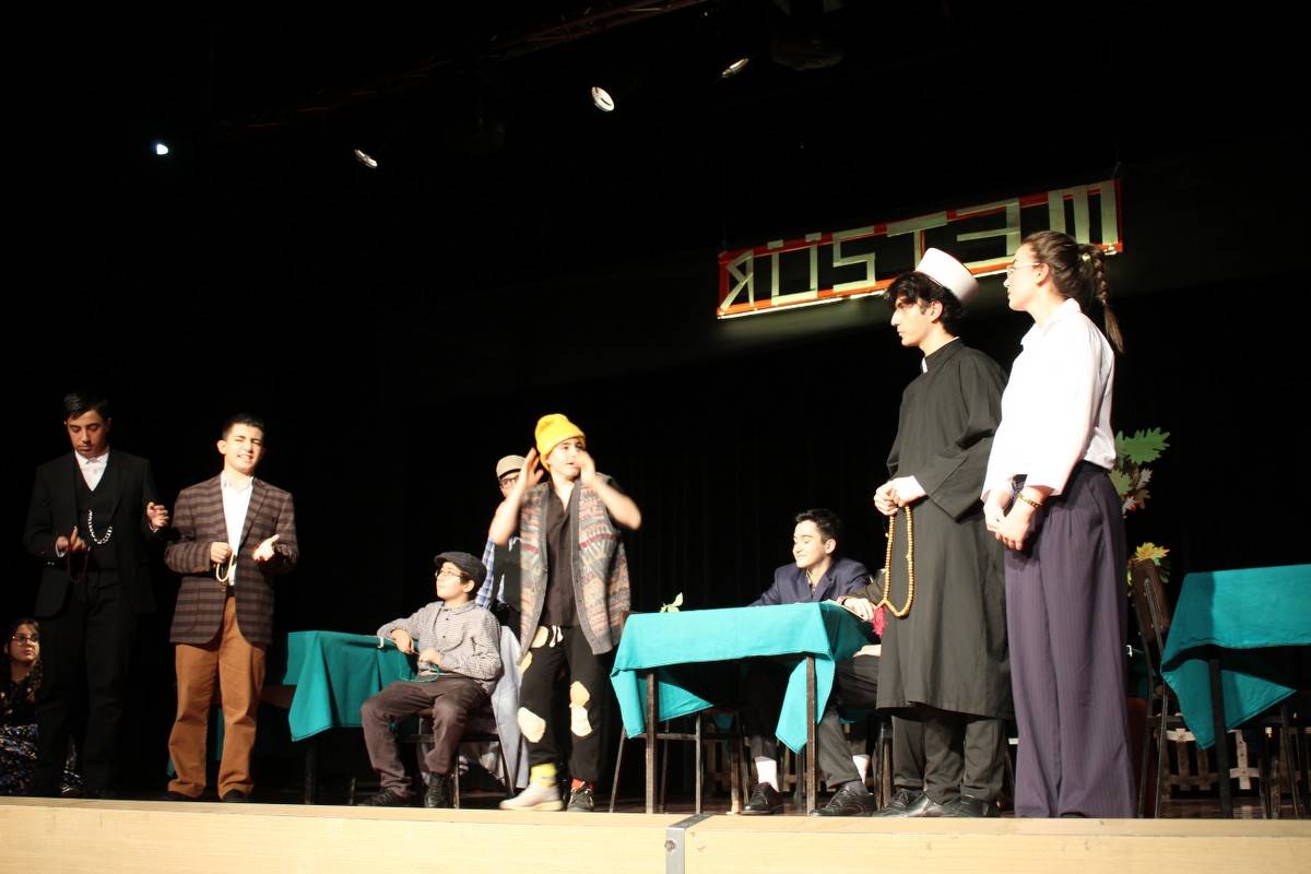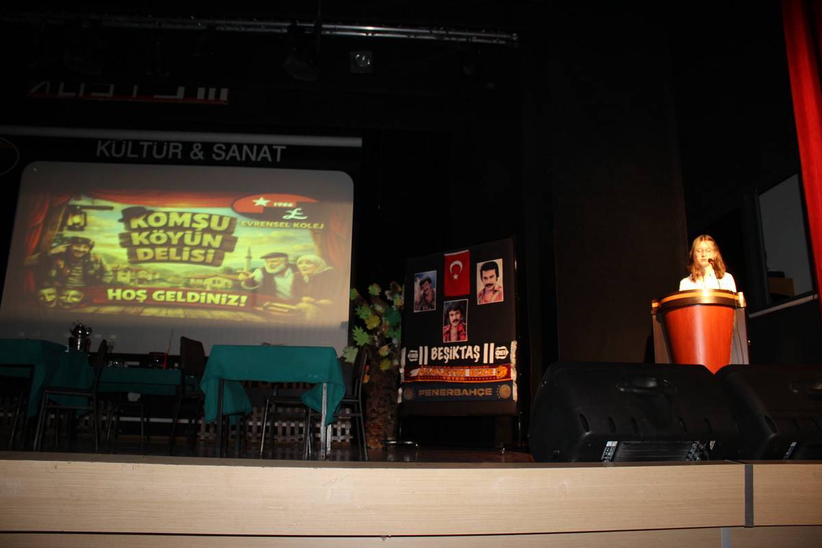 Prof. Dr. Üstün Dökmen'in eseri "Komşu Köyün Delisi" adlı tiyatro oyunumuz seyirciyle buluştu. Oyunda bir de sürpriz vardı. Oyunun yazarı Prof. Dr. Üstün DÖKMEN de oyunumuzu izleyenler arasındaydı. Bu durum hem çocuklarımızı hem seyircilerimizi çok mutlu ederken öğrencilerimizin performansları göz doldurdu ve oyun izleyicilerden tam not aldı.