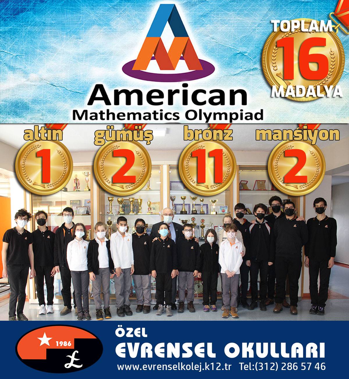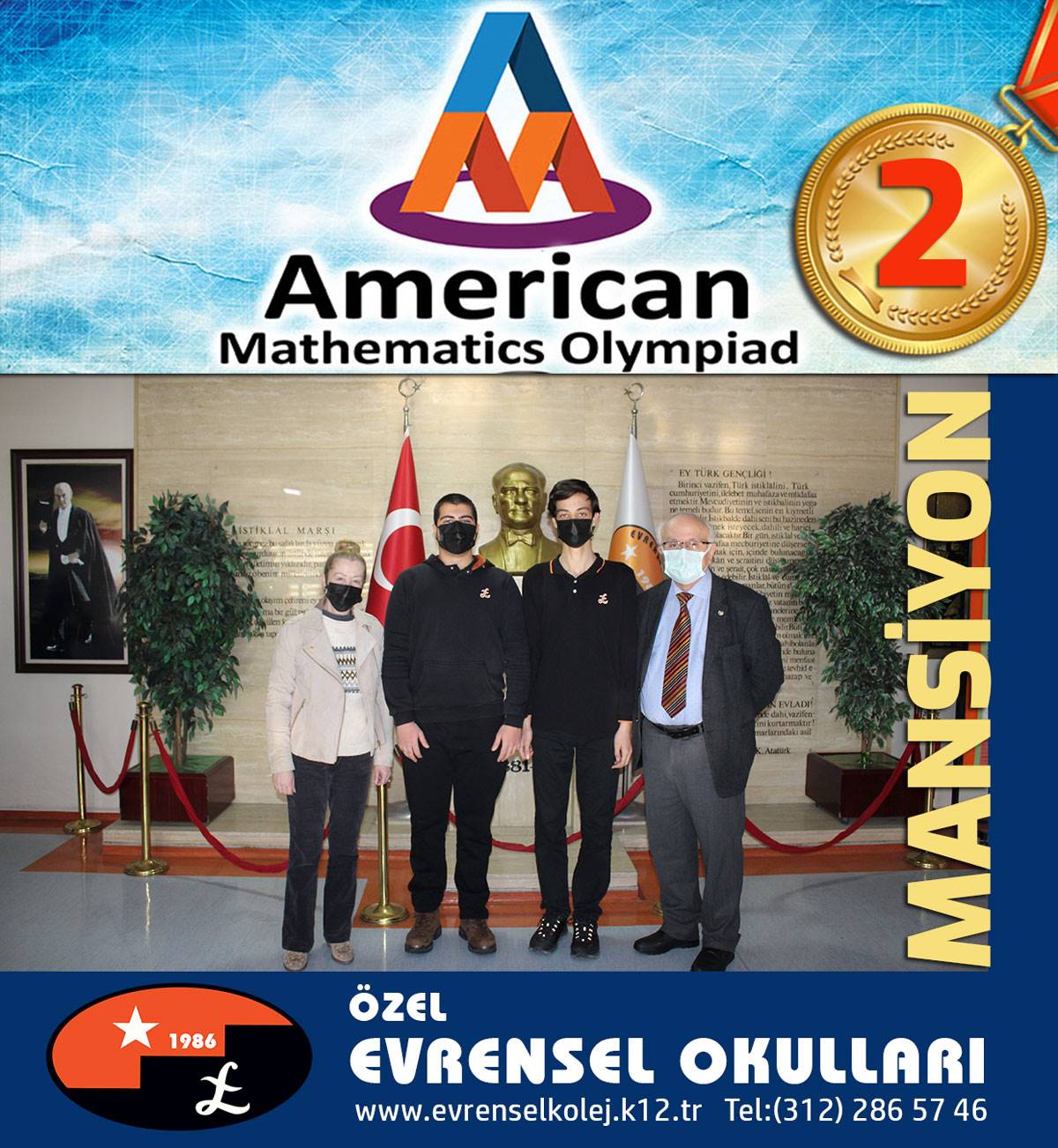 Amerikan Matematik Olimpiyatları, İlkokul - Ortaokul ve Lise öğrencileri için Southern İllinois University (SIU) ve SIMCC tarafından öğrenciler arasındaki rekabeti artırmak için Matematik alanında düzenlenen uluslararası bir yarışmadır. Uluslararası Matematik Yarışması ((International American Math Olympiads 2021) bu yıl 12 Kasım 2021 tarihinde yüz yüze olarak gerçekleştirildi.