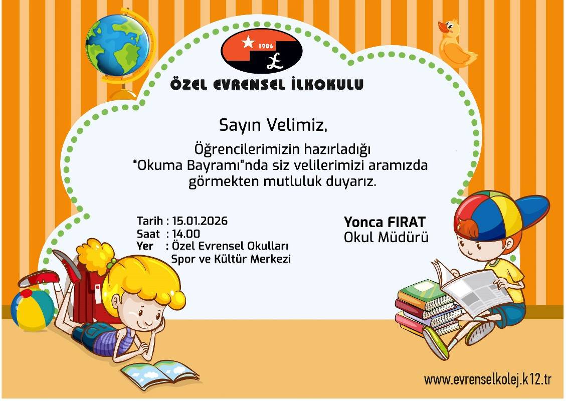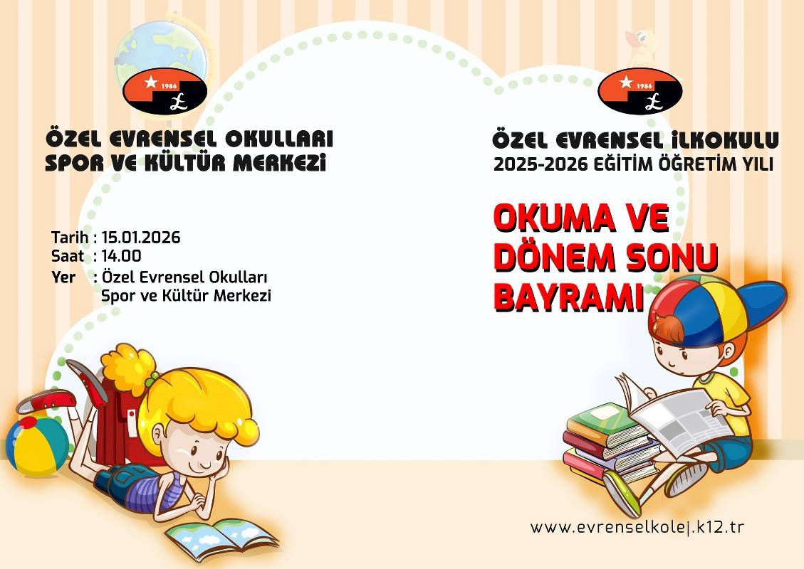 14 Oca 2026 OKUMA VE DÖNEM SONU BAYRAMIMIZA DAVETLİSİNİZ Öğrencilerimizin hazırladığı "Okuma ve Dönem Sonu Bayramı"nda sizleri aramızda görmekten mutluluk duyarız. Paylaş: