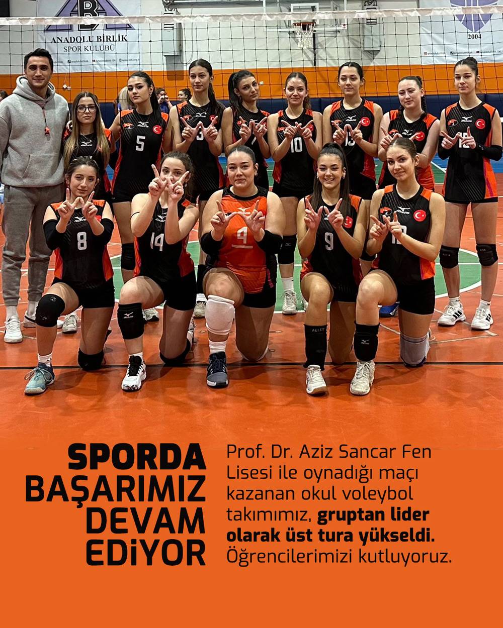 11 Ara 2025 SPORDA BAŞARIMIZ DEVAM EDİYOR Prof. Dr. Aziz Sancar Fen Lisesi ile oynadığı maçı kazanan okul voleybol takımımız, gruptan lider olarak üst tura yükseldi. Öğrencilerimizi kutluyoruz. Paylaş: