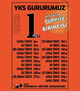 Öğrencilerimizden biri, 2025 AYT Sayısal alanında Türkiye 1.si olarak tarihi bir başarıya imza atmış, kurumumuzu ve şehrimizi gururlandırmıştır. Bunun yanı sıra sayısal, eşit ağırlık ve dil puan türlerinde öğrencilerimizden çok sayıda derece çıkmıştır.