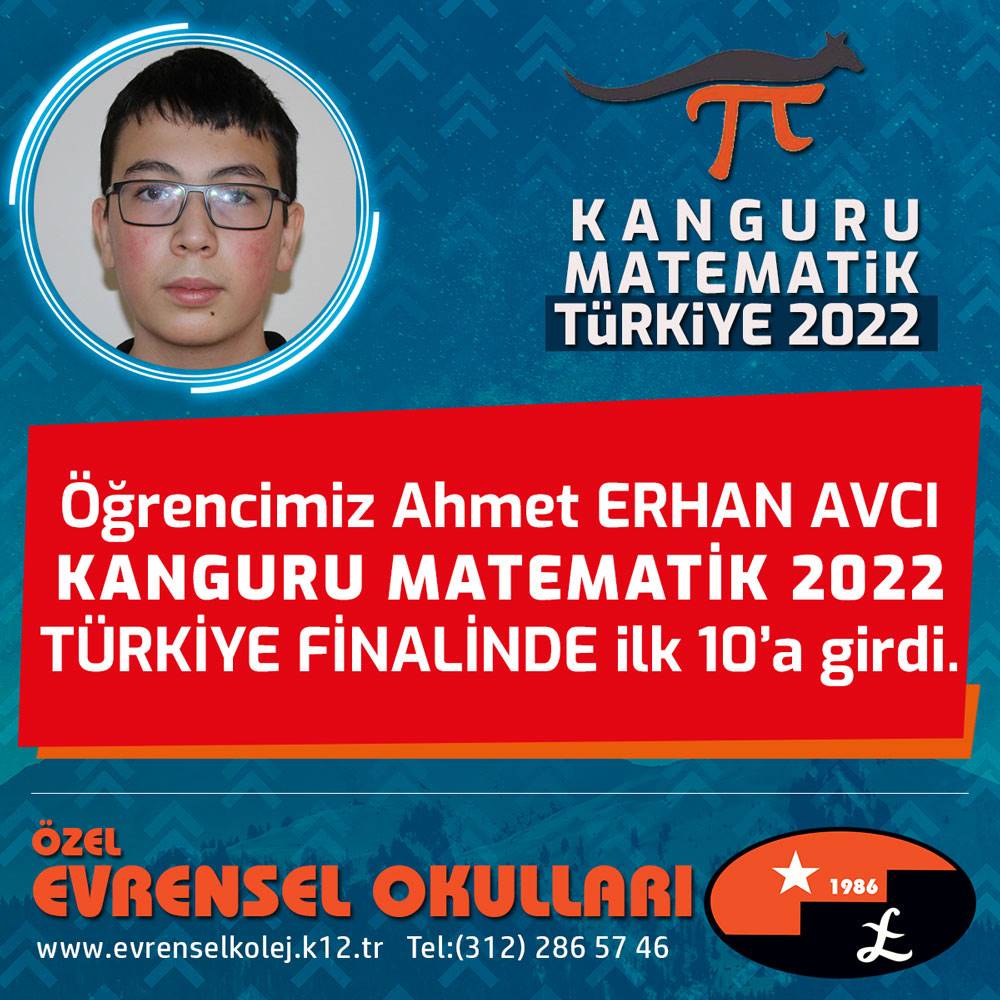Öğrencimiz Ahmet ERHAN AVCI, “Kanguru Matematik 2022 Türkiye Final Sınavı’nda İlk 10’a Girdi